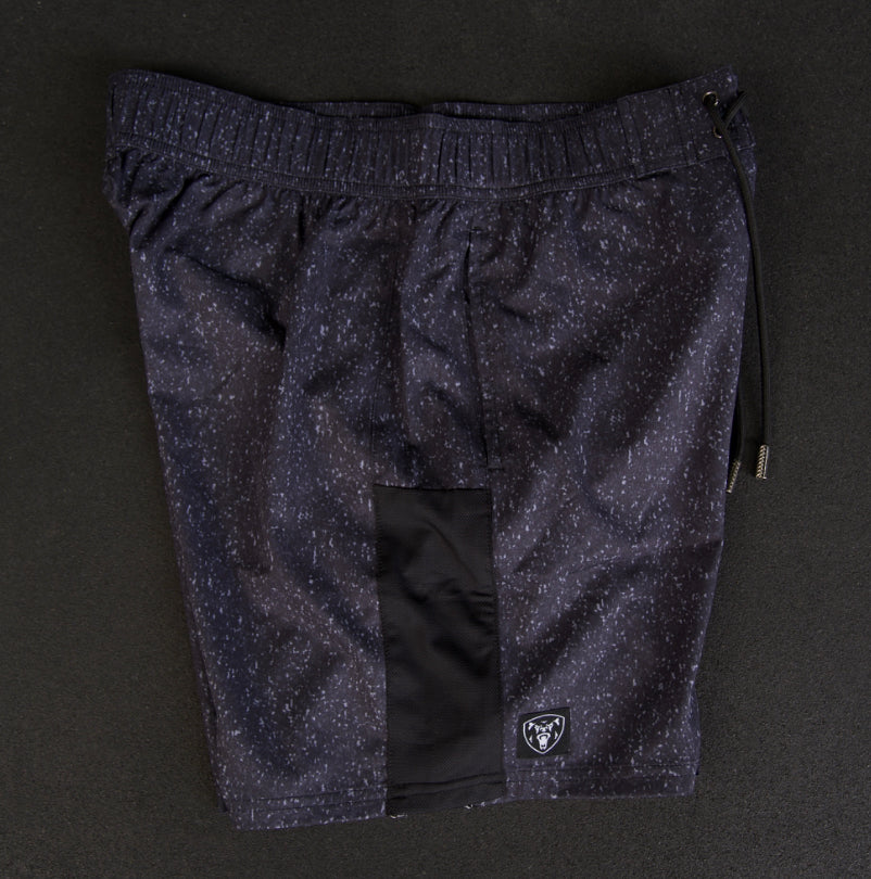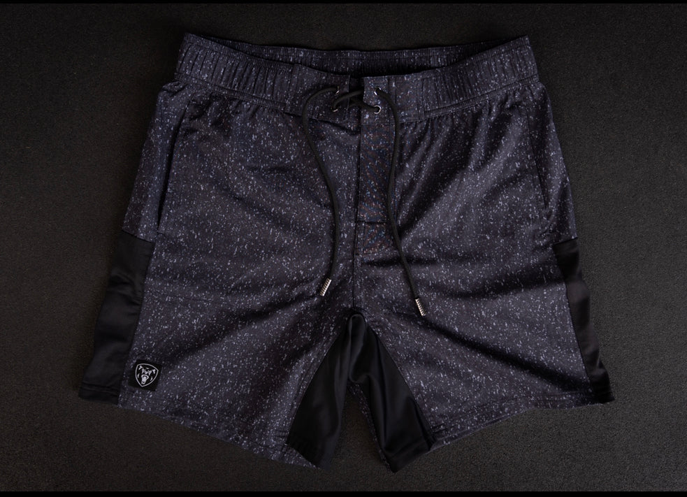 These training shorts are fitted with half mesh/half polyester pockets, mesh panels on the sides for more ventilation, woven label logo, elastic waistband with board short fly closure, metal tipped tassels, and a Lycra crotch gusset enables the wearer maximum mobility.