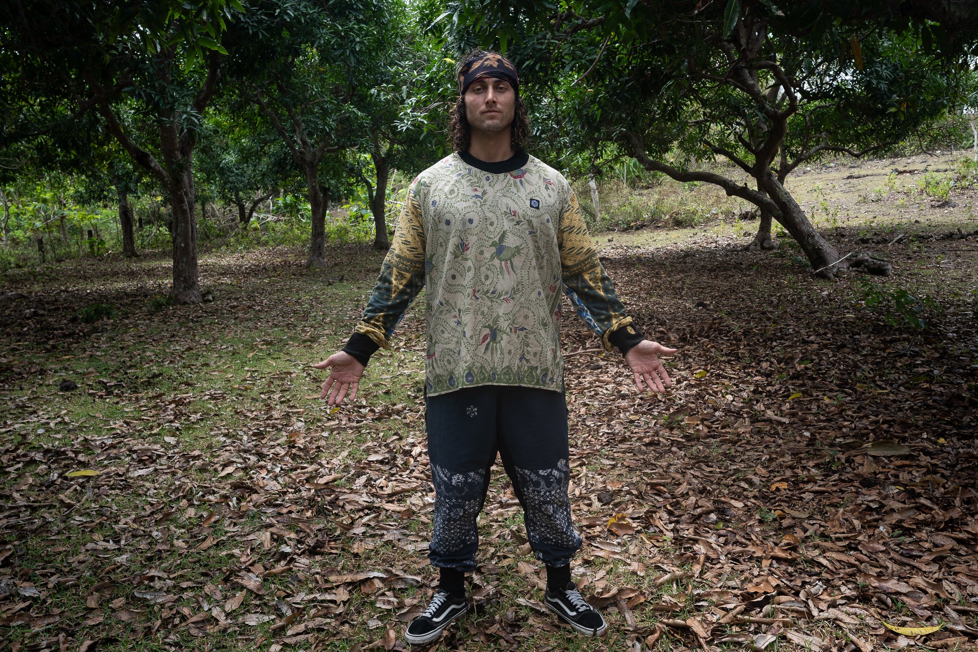 This is a traditional batik sarong repurposed into a smock and mixed with a more modern batik material we have been using.