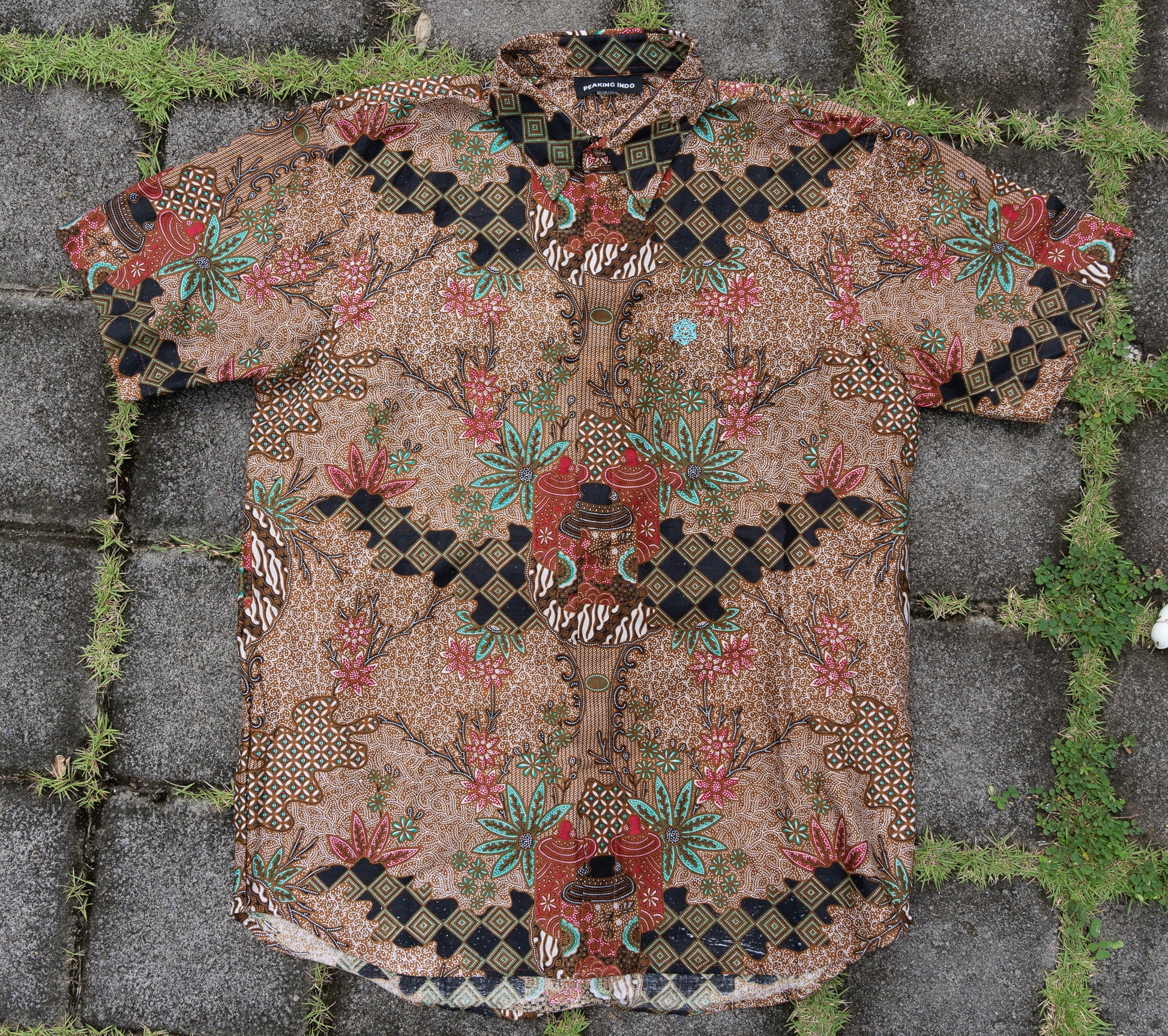 Each cotton shirt is a unique piece that has been hand sewn by our Indonesian seamstress and includes a Peaking Indo neck label, Dodecahedron logo embroidery, a chest pocket and coconut shell buttons—the batik design is one of a kind (rarely are there reoccurring patterns in the same size category) and we only produce small batches. We are shipping these products directly from Bali ourselves and for that reason we do not have the ability to accept returns, each sale is final. Each garment may be slightly different in size because each piece is handmade, this is not an automated process. Please view the specific dimensions to this piece listed below.